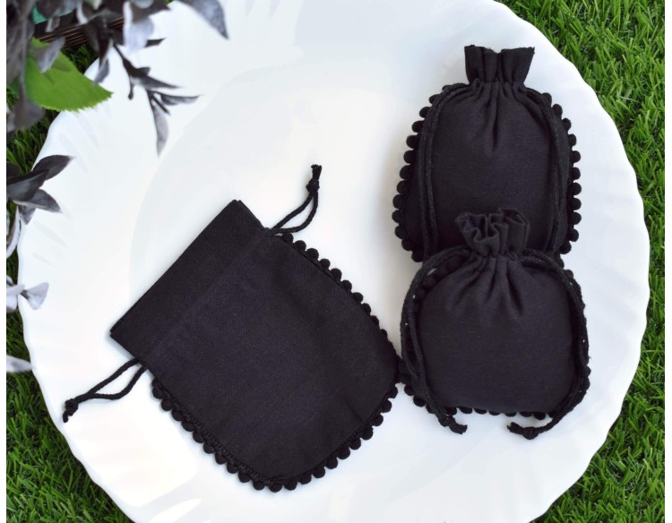 The pouches have pom pom which gives a royal look to these pouches. A pack constitutes 100 pieces of pouches that are handcrafted from natural cotton fabric. The small drawstring pouches are classy black in appearance and are environment friendly. Quality is the excel of these small designer pouches, which remains the same even after multiple washes.